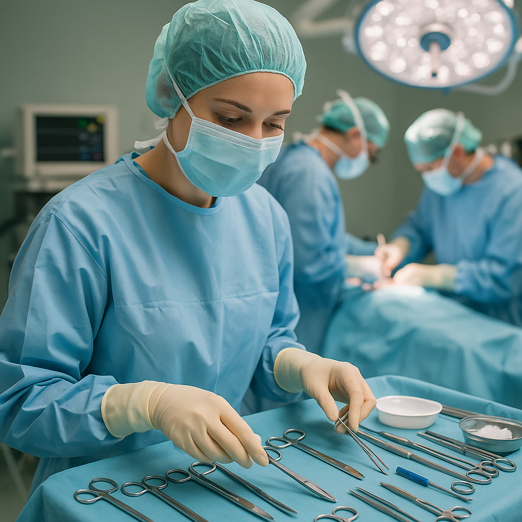 - Vor- und Nachbereitung von Operationen sowie Instrumentieren während operativer Eingriffe